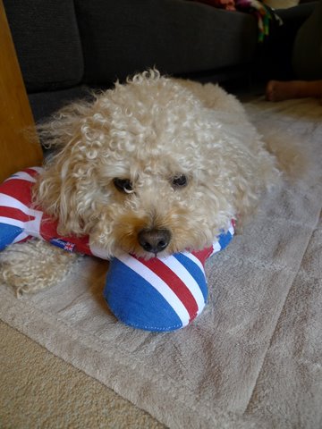 あずきは寝るとき、枕を使うので新しいクッションとして買いました。