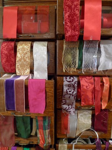 ベルベットのリボン、Bauble(ボール)、そしてこのリースのアクセントになる小さなベル、すべて無事にこちらに持ち帰れました。いらっしゃる皆様喜んでいただければ、と願うばかりです。