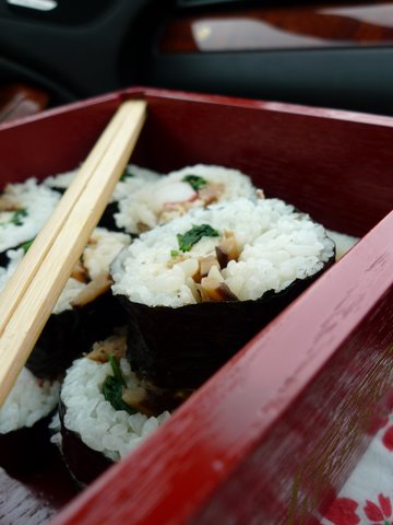 3日、ちらし寿司はあなごもないし・・・と。ここ最近ずっと食べたかった太巻きを作り、Annaに会いに郊外まで出かけるので一緒にお祝いをしようとお重に、もちろん雛あられも小さな器に入れてもっていきます。